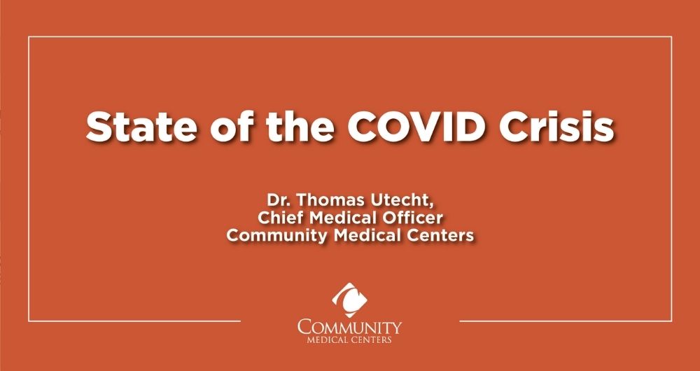 Our Chief Medical Officer Dr. Thomas Utecht provides an update on the state of the COVID-19 crisis as it relates to the entire Community Medical Centers healthcare system. He also provides important reminders about what you can do to continue keeping our community safe.